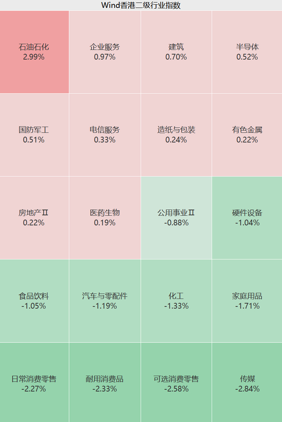 盘面上,上午港股传媒、消费板块普跌,汽车、化工、硬件设备等方向走低;石油石化、半导体、企业服务等板块逆市走强,AI应用方向火热。