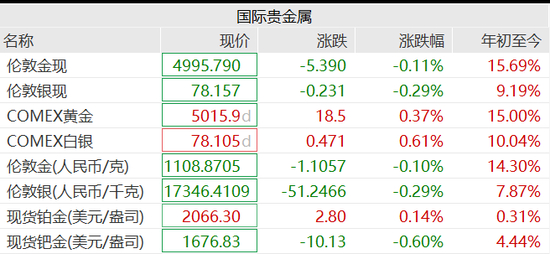 贵金属黄金白银调整,截至发稿,现货黄金跌0.11%,现货白银跌0.29%。高盛表示,总体而言,央行的黄金购买行为以及私人投资者因美联储降息而增加黄金敞口,将使黄金价格到2026年底逐步缓慢涨至每盎司5400美元。